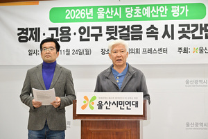 울산시민연대는 24일 오후 시의회 프레스센터에서 기자회견을 열고 2026년 울산시 당초예산안에 대해 "김두겸 시장 재임기간 경제·고용·인구 뒷걸음 속 민생 외면 예산"이라고 평가했다. 시민연대는 기자회견에서 "시 재정은 당초예산 증가율 18.8%로 특광역시 1위였지만 재정자립도는 하락했고, 예산 확장은 대부분 중앙정부 의존으로 이뤄졌다"며 "이러한 상황에서 울산시는 경제 둔화와 고용 악화에 대응할 확장재정보다는 긴축 편성을 택해 민생·고용·산업전환에 필요한 투자를 놓치고 있다"고 지적했다. 이어 "지방선거를 앞두고 선심성·가시성 사