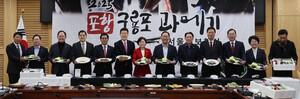올해 포항구룡포과메기 출시 국민홍보행사가 25일 오전 서울 여의도 국회의원회관 제2세미나실에서 개최됐다. 이날 행사는 매년 11월 중순을 전후 본격적인 생산에 들어가는 겨울철 별미 '포항구룡포과메기'를 전국에 알리고 지역 대표 특산물인 과메기의 소비를 확대하기 위해 마련된 자리다. 포항이 지역구인 김정재, 이상휘 국회의원이 주최하고 포항시, 경북매일신문사가 주관한 행사는 시식을 겸해 진행됐으며 과메기뿐만 아니라 과메기무침, 과메기강정, 과메기김밥 등 다양한 요리를 선보여 입맛을 돋웠다. 특히 올해 출시된 '통통과메기'는 참석자들의