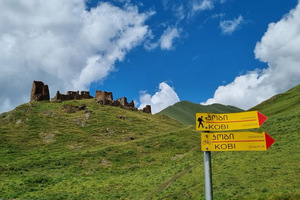 22년 봄, 처음 조지아에 갔을 때는 아무런 정보나 사전 지식이 없었다. 무작정 걷고 모든 것을 눈에 담아오려는 욕심만이 가득했다. 그때 시내를 거닐다 작은 상점에서 몇 장의 기념품 엽서 앞에서 그만 눈이 휘둥그레지고 말았다. 거기엔 정말 아름다운 자연 속에 집 몇 채가 동그마니 있는 천하절경이었다. 여기가 어딜까? 며칠 후면 이곳을 떠나야하는 일정이었지만, 아랑곳하지 않고 무작정 주인에게 "사드 바르?" (여기가 어디냐?)고 물었더니 곧이어 "투세티, 오말로"(Tusheti Omalo)란다. 근처라면 지금 당장이라도 가야겠다고 바