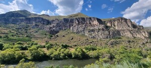 가뜩이나 좁은 도로를 달리느라 초긴장의 연속인데 길옆으로 주차된 대형 트럭은 끝이 없다. 모두 러시아로 들어가는 물류 차량이란다. 몇 날을 참고 기다려야 국경선을 넘을지 장담할 수 없기에 운전자들은 여유롭게 풀숲에 앉아 이야기를 나누고 있다. 가도 가도 이어진 차량 행렬이다. 이 모든 차량은 러시아와 무역을 하려고 이웃한 아르메니아, 카자흐스탄, 튀르키예, 타지키스탄 등에서 왔단다. 곡예 운전을 하느라 몸도 마음도 지쳐갈 즈음이었다. 산 중턱에 이르렀는데 고산으로 펼쳐진 푸르디푸른 초원을 보는 순간 입을 다물지 못했다. 뒤로는 눈