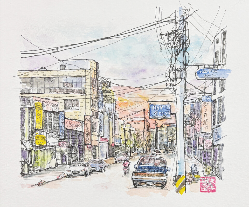 세민다방 창가에 자리를 잡으면 옥교동에서 학성공원으로 가는 일방통행도로의 모든 움직임을 볼 수 있다. 그리고 울산역 방향으로 학성파출소, 또 함월초등학교 학산 거리도 한눈에 들어온다.