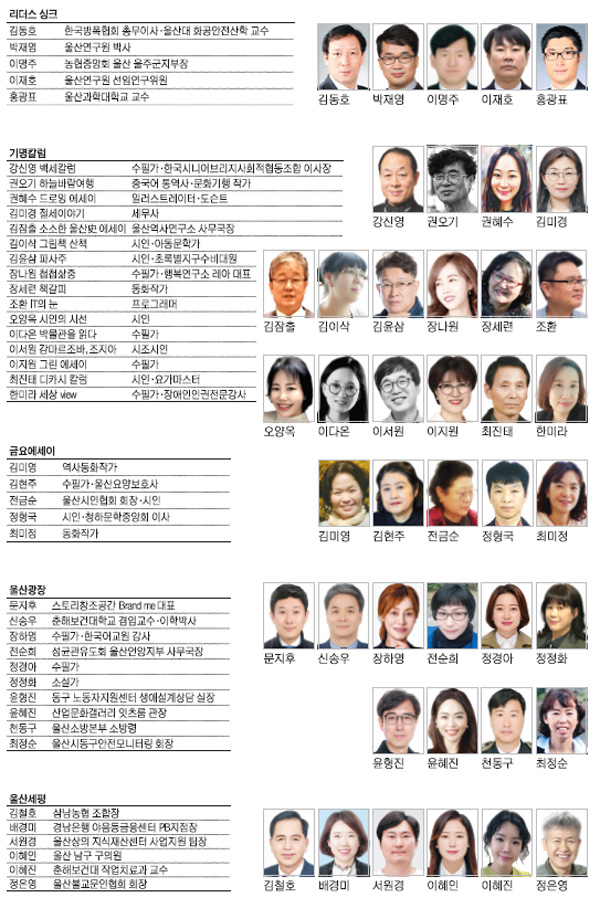 울산신문이 2025년 을사년을 맞아 오피니언 필진을 보강해 독자 여러분을 찾아갑니다. 각계 전문가들의 깊이있는 시각으로 지역사회를 진단하고 대안을 제시하는 오피니언 리더를 비롯해 울산광장, 울산세평, 시인의시선, 금요에세이 등 주제가 있는 기고들로 독자 여러분을 찾아갑니다. 특히 기명칼럼을 통해 일상에서 쉽게 접하기 어려운 다양한 분야의 읽을거리를 제공함으로써 지역과 삶에 대한 따뜻한 시선을 보여드립니다. 독자여러분의 많은 관심 바랍니다.