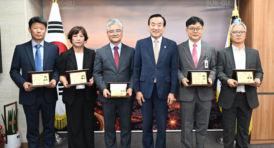 바로가기 복사하기 본문 글씨 줄이기 본문 글씨 키우기 이 기사를 공유합니다 페이스북(으)로 기사보내기 트위터(으)로 기사보내기 네이버블로그(으)로 기사보내기 URL복사(으)로 기사보내기 닫기 카카오톡 네이버밴드 다른 공유 찾기 박천동 울산 북구청장이 22일 북구청 구청장실에서 5급 승진자에 대한 임용패를 전달한 후 기념촬영을 하고 있다. 울산 북구 제공 울산신문 news@ulsanpress.net 기자의 다른기사 저작권자 © 울산신문 무단전재 및 재배포 금지 개의 댓글 구글 네이버 페이스북 카카오톡 회원로그인 작성자 비밀번호 댓글 내용입력 댓글 정렬 최신순 추천순 답글순 BEST댓글 BEST 댓글 답글과 추천수를 합산하여 자동으로 노출됩니다. 닫기 더보기 댓글삭제 삭제한 댓글은 다시 복구할 수 없습니다. 그래도 삭제하시겠습니까? 비밀번호 닫기 댓글수정 댓글 수정은 작성 후 1분내에만 가능합니다. 본문 / 400 비밀번호 닫기 내 댓글 모음 닫기