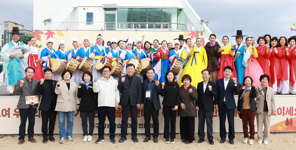 울산 동구는 지난 8일 일산해수욕장 상설무대에서 김종훈 동구청장 및 내빈과 평생학습동아리 회원 등 600여명이 참석한 가운데 어울림한마당을 개최했다. 울산 동구 제공