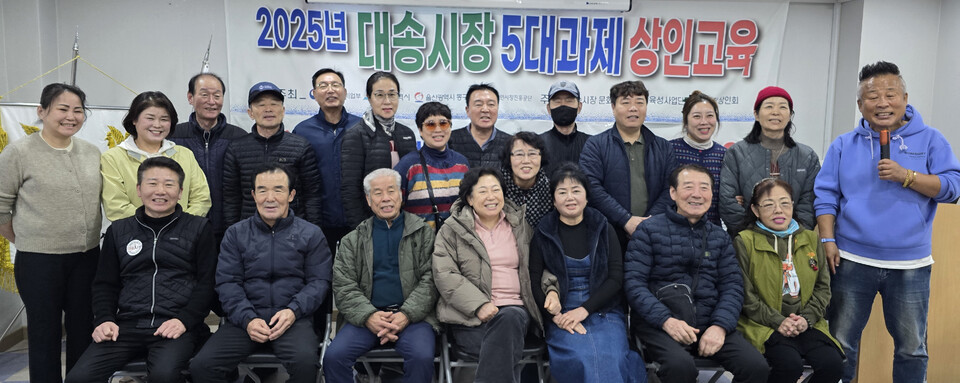 울산 동구는 전통시장의 경쟁력 제고와 상인들의 실질적인 경영 능력 향상을 위해 17일 대송시장 상인회 사무실에서 전통시장 상인 30명을 대상으로 상인 역량 강화 교육을 실시했다. 울산 동구 제공