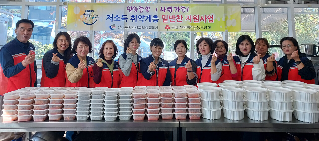 삼산동 지역사회보장협의체(공동위원장 최은주, 최복자)가 25일 나눔천사기금액으로 마련한 영양듬뿍 사랑가득, 따뜻함을 담은 밑반찬 나눔 행사를 개최했다. 울산 남구 제공